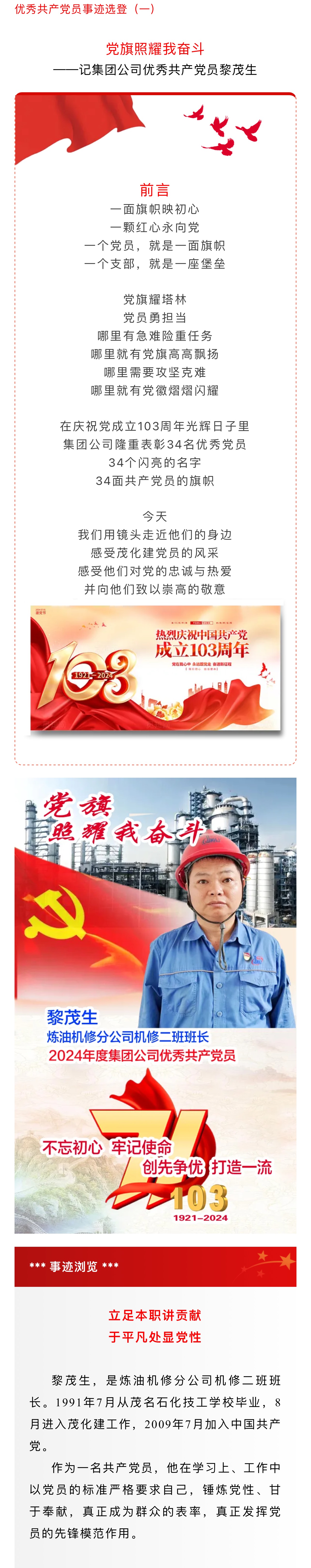 黨旗照耀我奮斗——記集團(tuán)公司優(yōu)秀共產(chǎn)黨員黎茂生