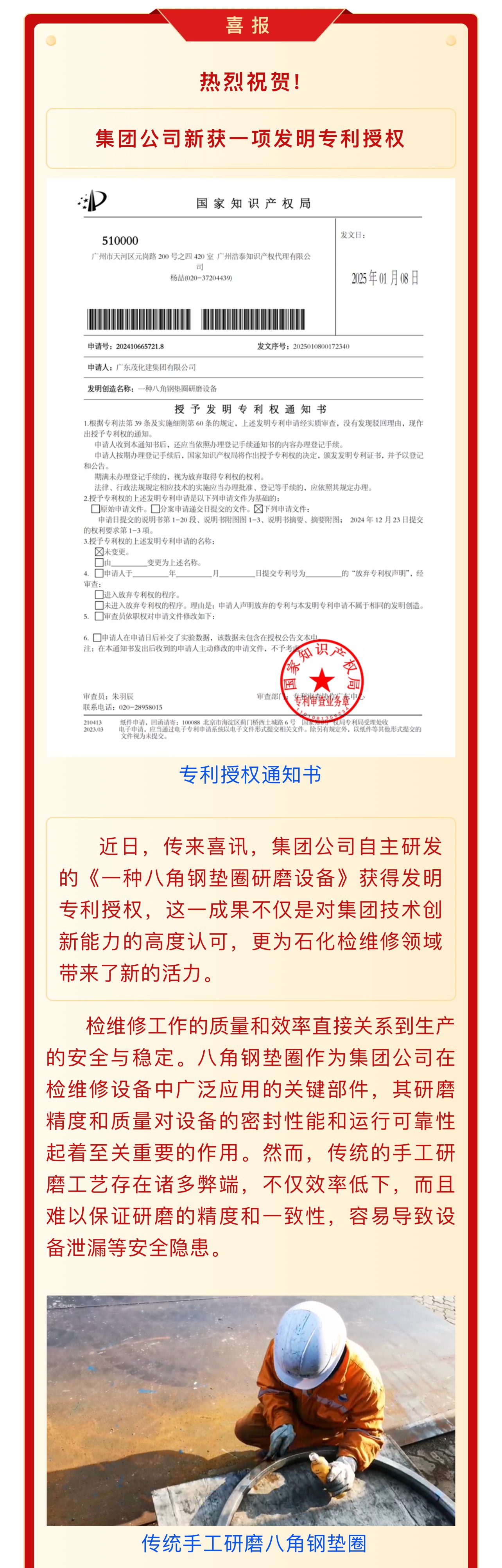 喜報:集團公司新獲一項發(fā)明專利授權(quán)