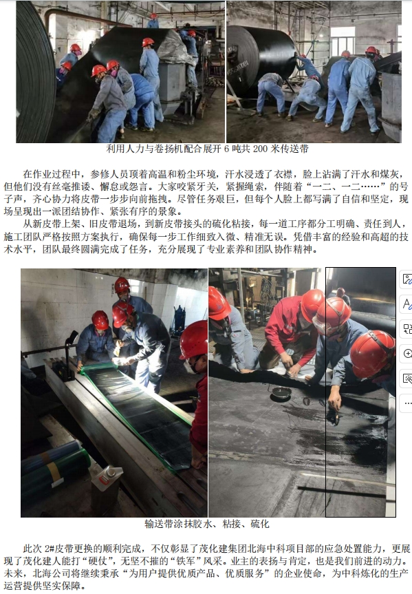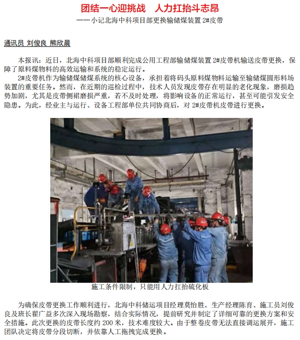 記北海中科項(xiàng)目部更換輸儲煤裝置 2#皮帶